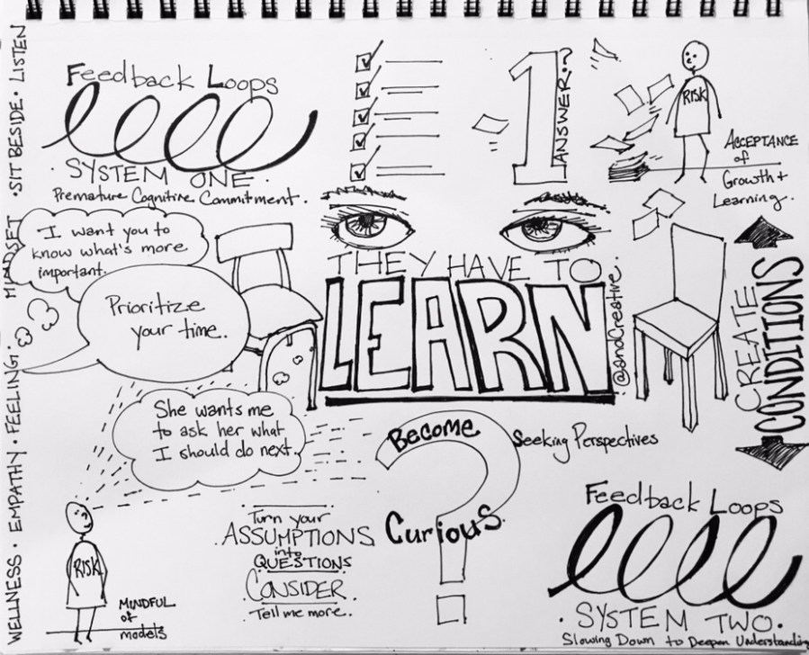K: I wish I believed that the “it” was a verb. Learning vs performing or the thing at the end. I think all learners can find themselves in the learning. I also believe that sitting beside is the ultimate status quo changer. Belief in the risk creates the space between. When we sit beside them, they know we can see them. They also know we expect different from having spent time there. You cannot hide and I don’t want you to. The feedback is not a checkbox. It’s the backsy forthsy in the learning.